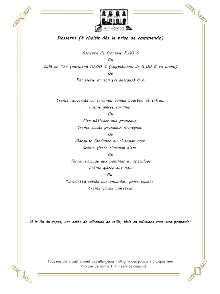 Tous nos desserts contiennent des allergènes